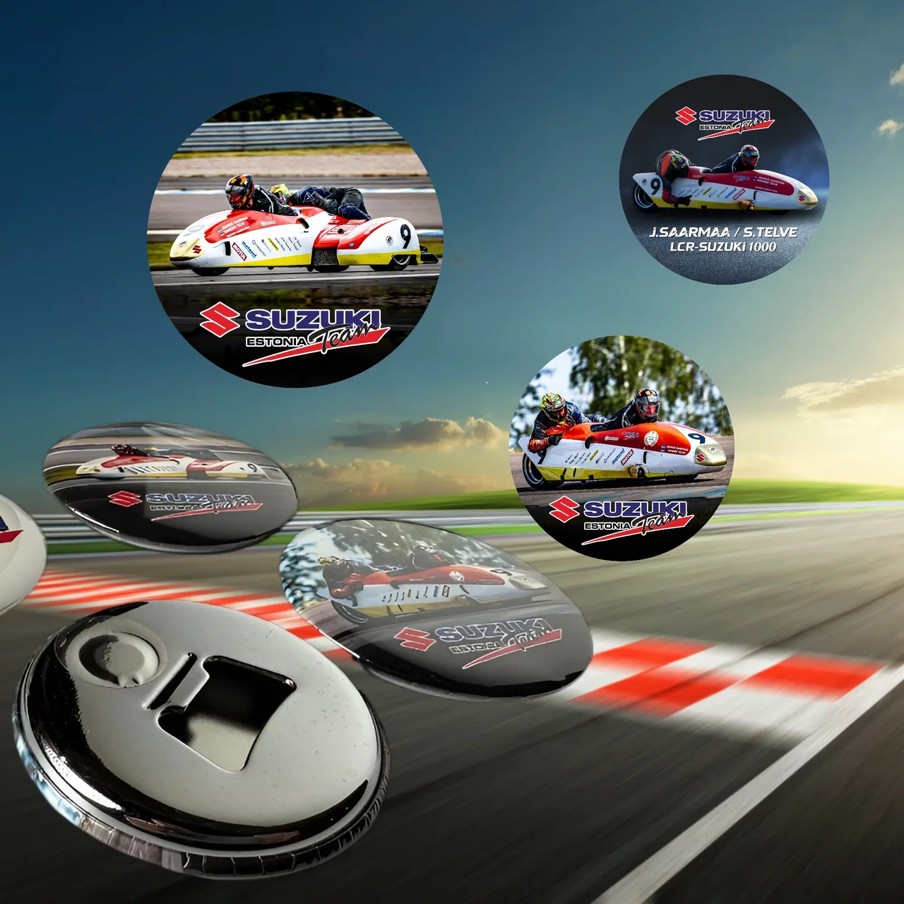 Toetan külgvankri ekipaaži ja valin meeneks eksklusiivse tiimi kujutisega pudeliavaja/külmikumagneti