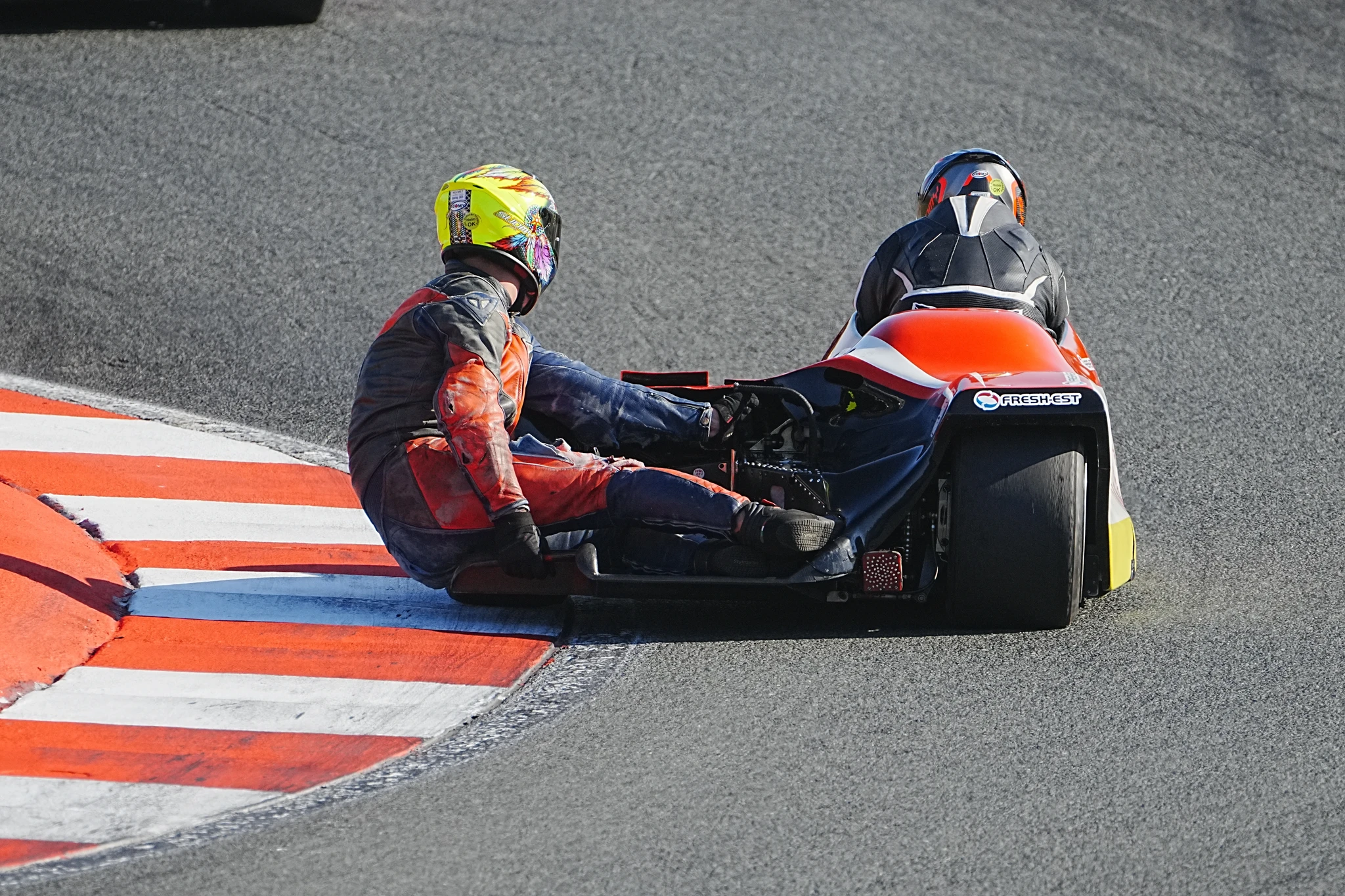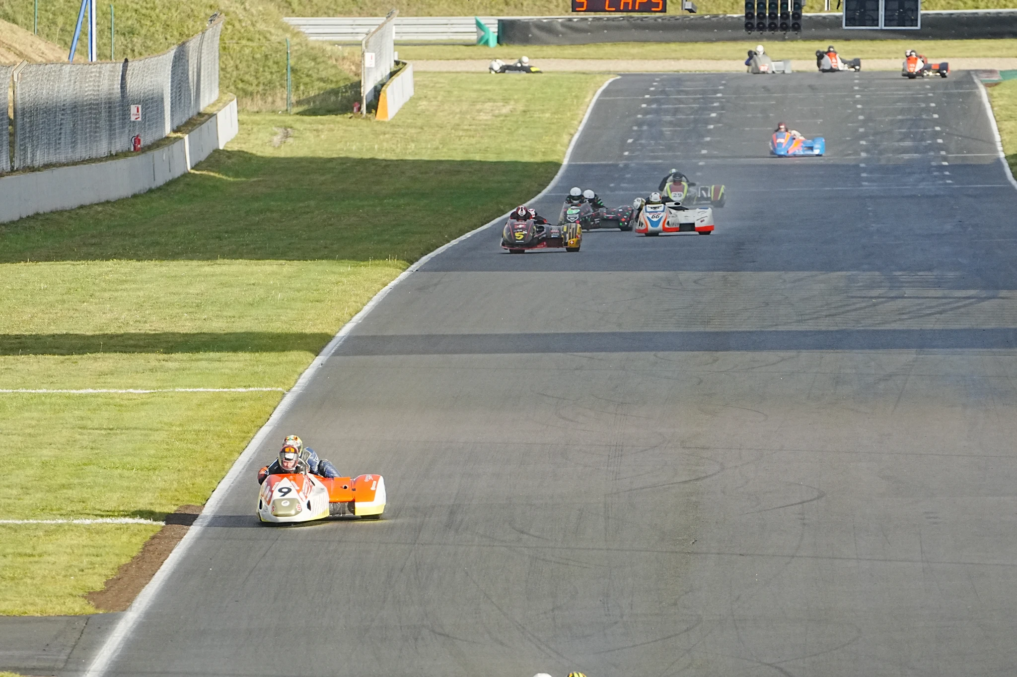Pärastlõunaseks stardiks oli kuiva raja „treeningsessioon“ tehtud, pilt selgem ja käsi kindlam. Külgvankrite maailma uustulnukad Saarmaa-Telve näitasid Oscherslebenile oma „firmamärki“, minnes võistlust juhtima juba stardisirgel. Eestlased hoidsid liidrikohta pool võidusõitu, kuid pidid selle viiendal ringil loovutama kohalikule ekipaažile. Jaanus ja Sander finišeerusid oma klassis teisena, kaotades finišis 2025. aastal Internationale Sidecar Trophy meistriteks tulnud Roscher-Burkardile vaid 1,4 sekundiga! Eestlaste parim ringiaeg oli 1.38,8. Kolmandad olid Volland-Gubernath (parim 1.41,7), keda Suzuki tiim edestas 32 sekundiga.