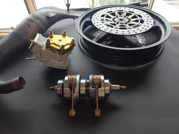 Motorsport 108 töökoja mitmekesisest menüüst leiame ka meistri väljatöötatud võidusõidutehnika erilahendusi ja mootorratta detaile.