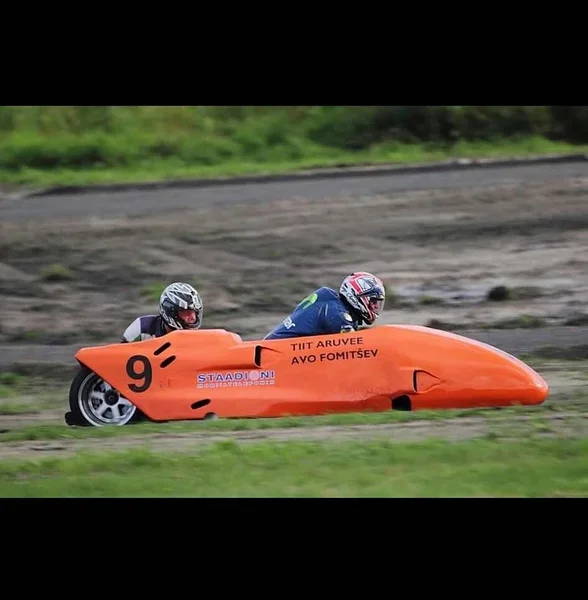 Fresh-ESTi motospordihuviline esinduskoosseis - uus külgvankri ekipaaž harjutab paremkurvide võtmist.