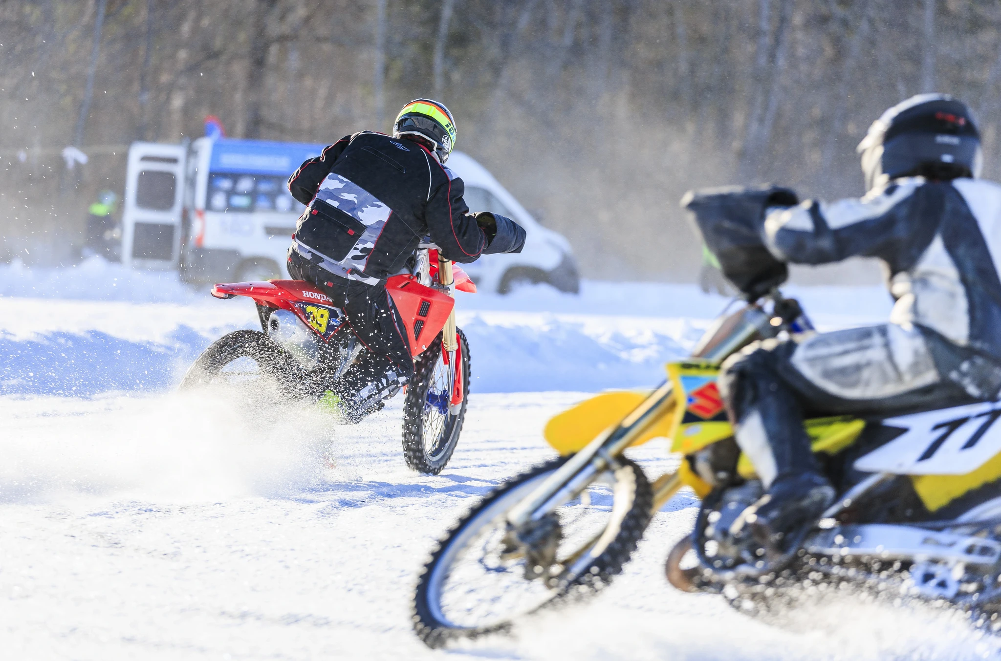 Stardijoonel oli üle aastate tagasi kunagine ringrajaäss Oskar Kärg (15a), kes proovis pärast seitsmeaastast pausi jäärajasõitu. Kamba peale leiti nii tsikkel Suzuki RM 125 kui rehvid (aitäh, Jaanus Saarmaa ja Sander Medri!), mis lubasid starti minna vaid väga kiiresse meistriklassi - MX Open jääpiik.