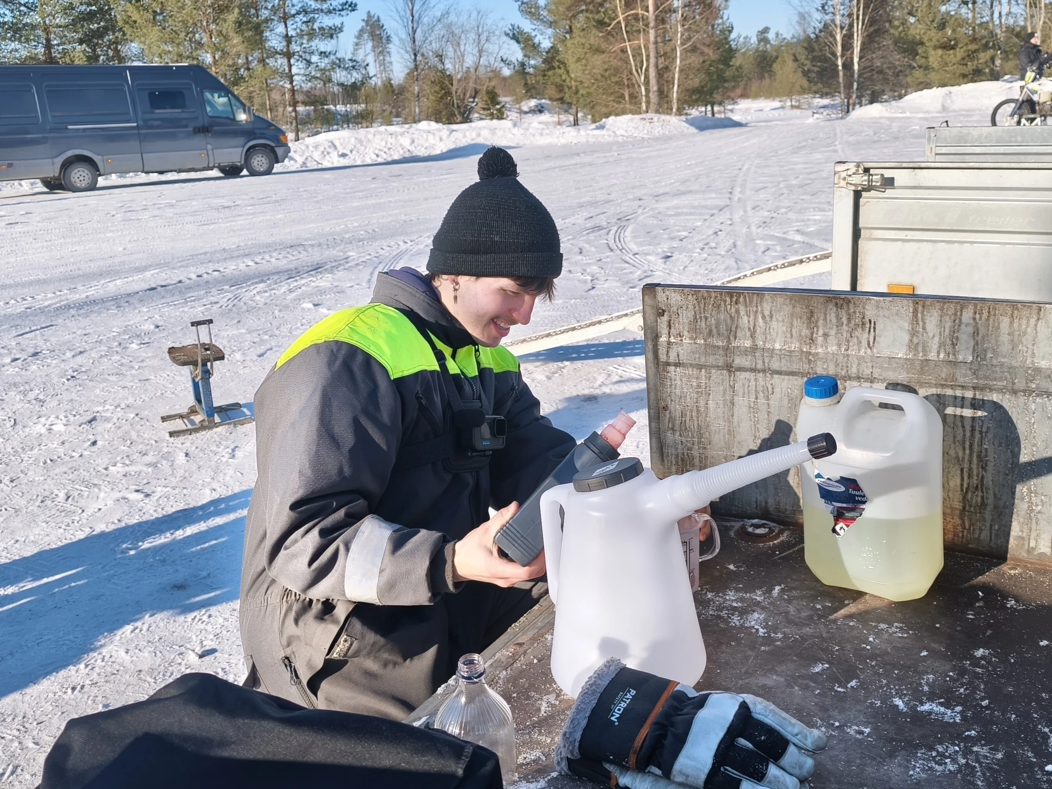 Enne võidusõitu tegi Oskar kaks trennipäeva Pihuvere jäärajal ja oli valmis võistlustulle sööstma. Ja kuigi masinal olid all rehvid, mis poodiumikohta just ei ennustanud, ei lasknud Oskar ennast sellest natukenegi häirida ja hoidis head tuju üleval terve meeskonna eest.