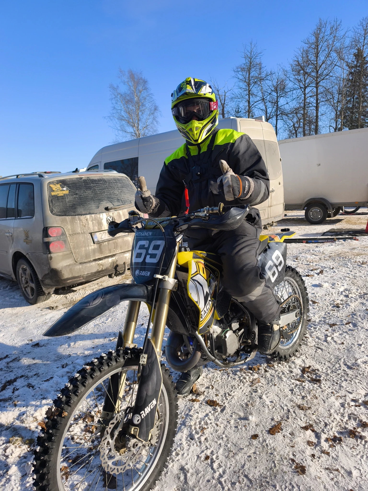 Kevin jõudis oma kahetaktilise krossitsikliga teha kolm trenni jäärajal ja läks vapralt võistlusstarti klassis MX Hobi krossinael. Kõik, mis juhtuda sai, see juhtus. Kvalifikatsioonis ei saanud Kevin arvestatavat aega kirja, sest teisel ringil murdus käiguvahetushoob.